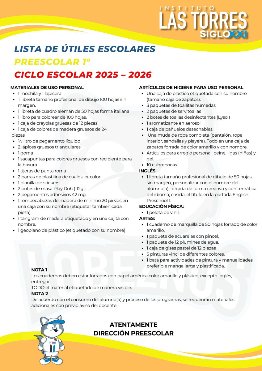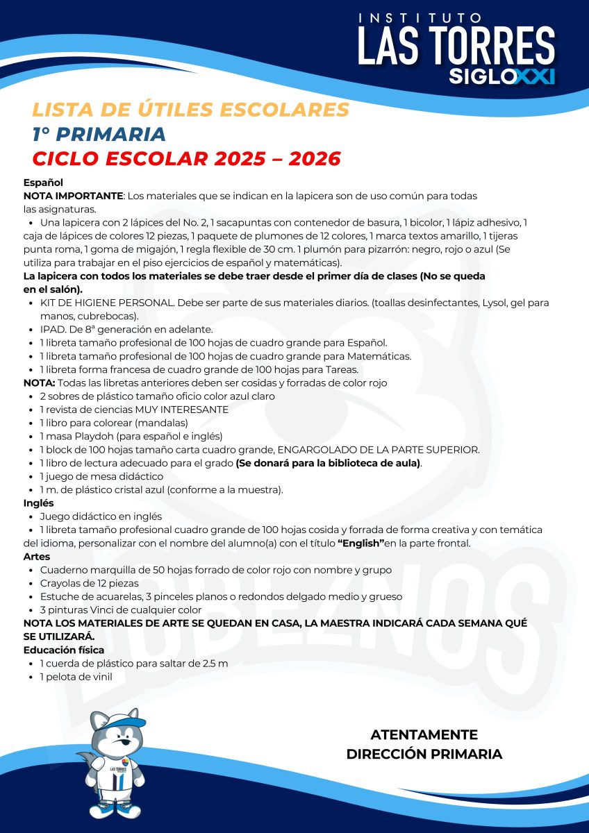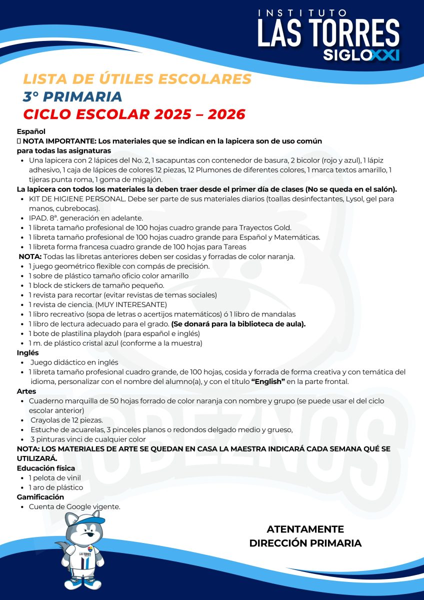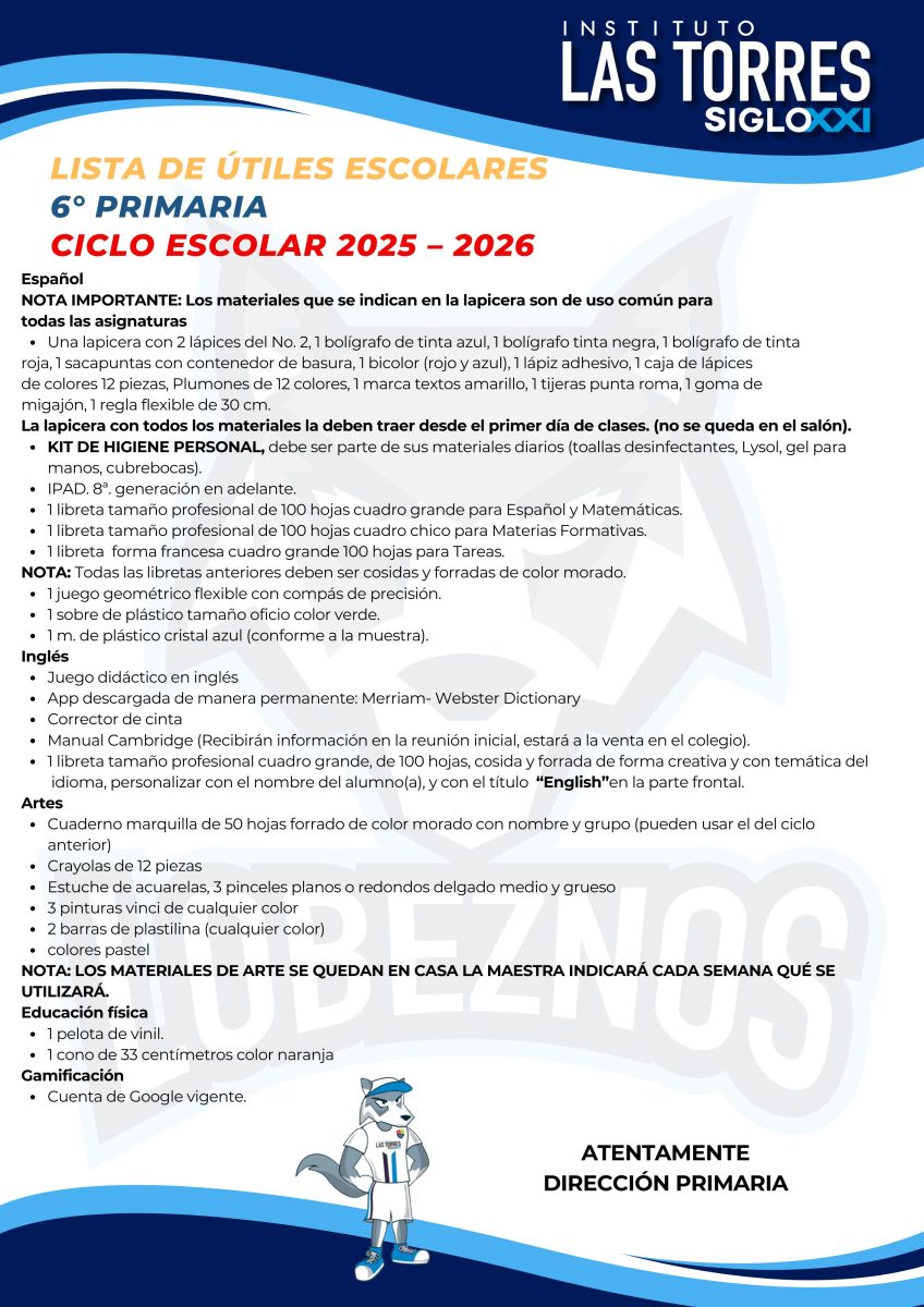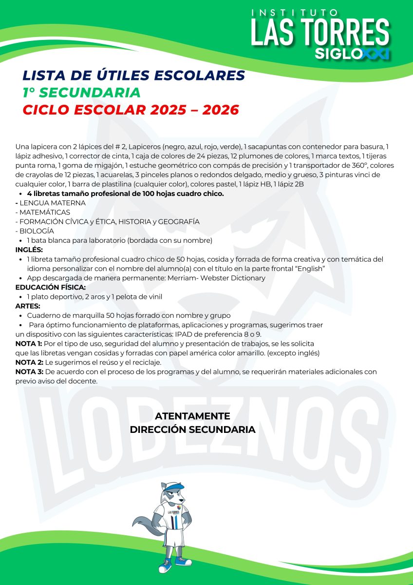 Estimado Padres de familias compartimos con ustedes las listas de útiles correspondientes al ciclo escolar 2025-2026.