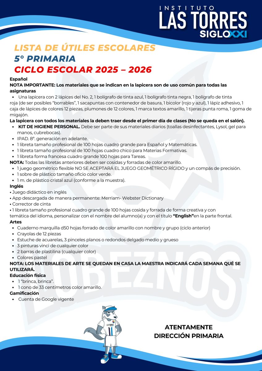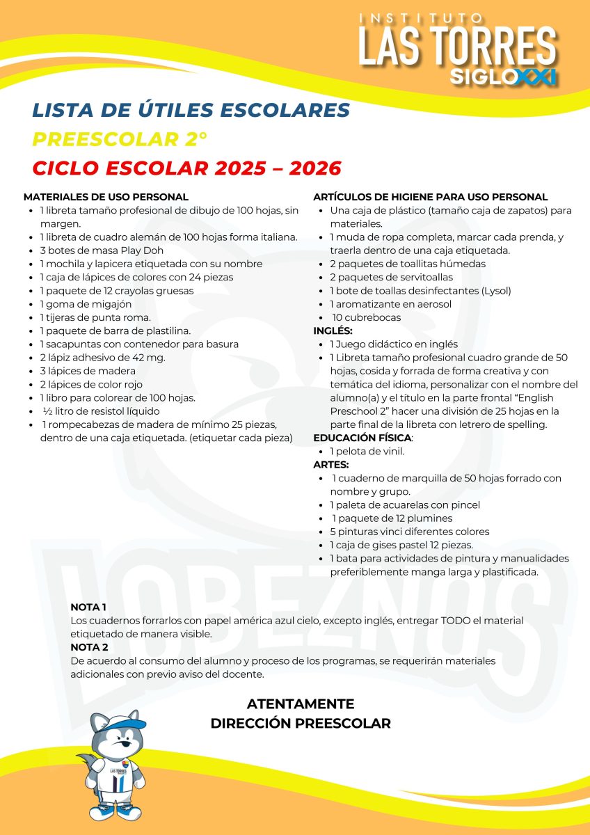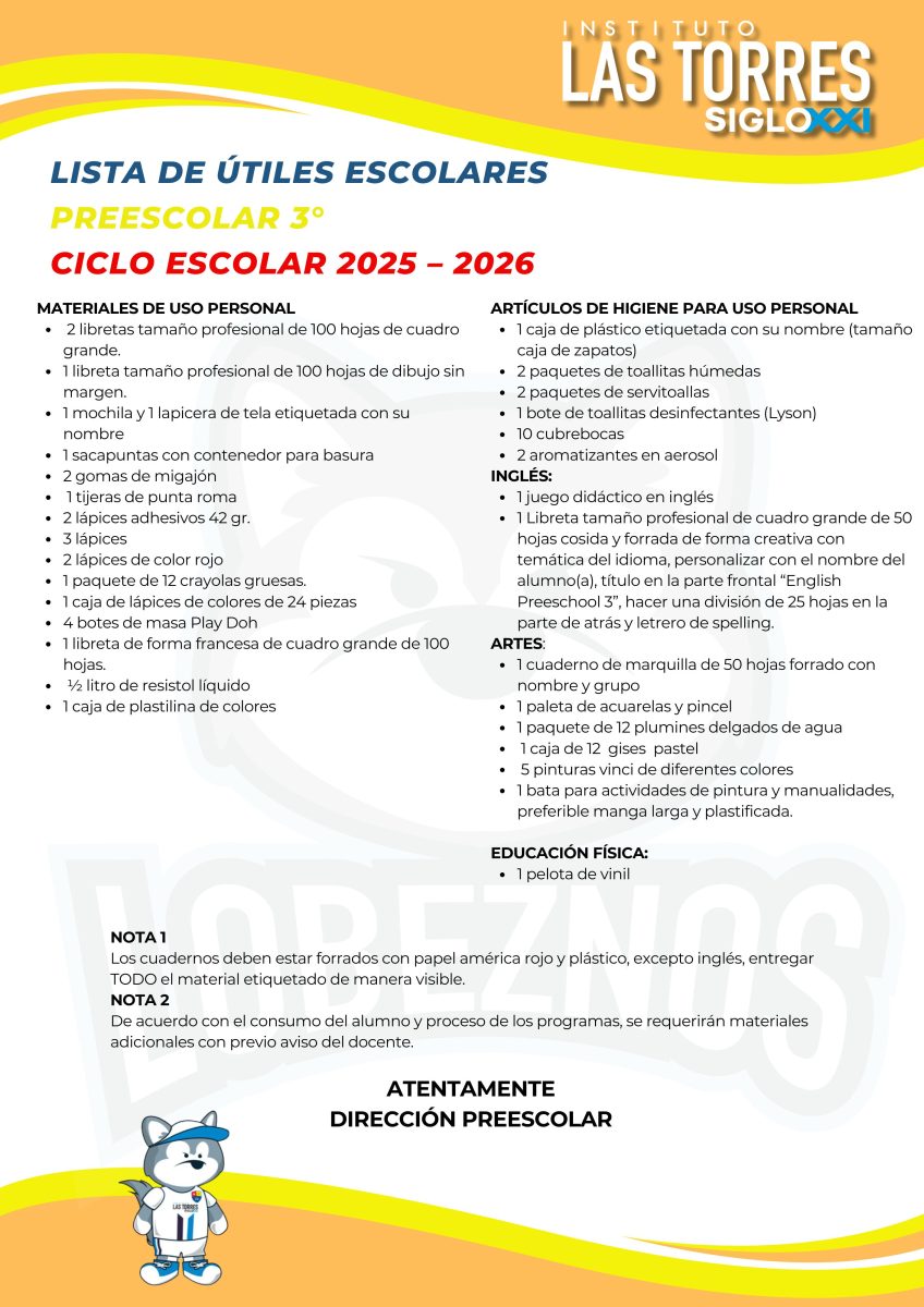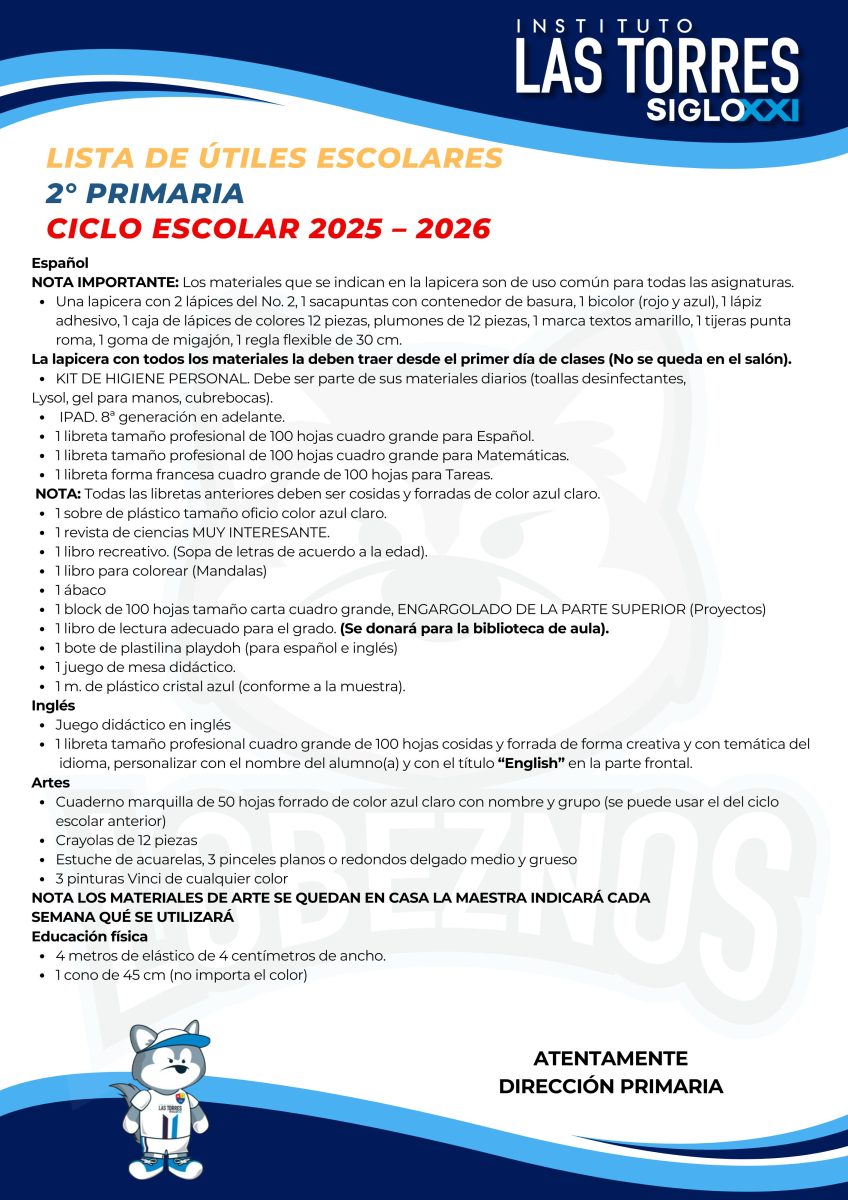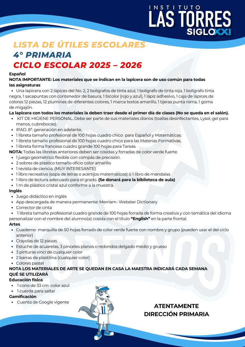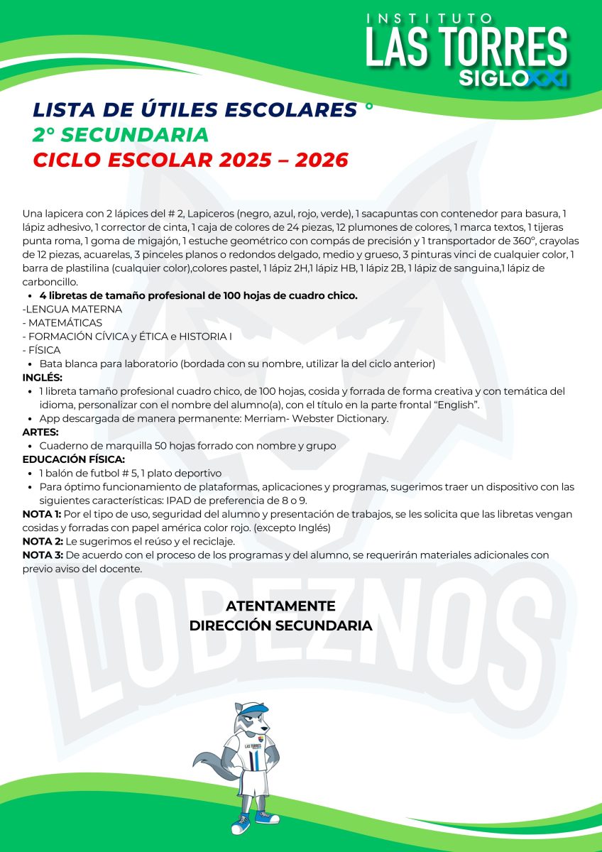 Estimado Padres de familias compartimos con ustedes las listas de útiles correspondientes al ciclo escolar 2025-2026.