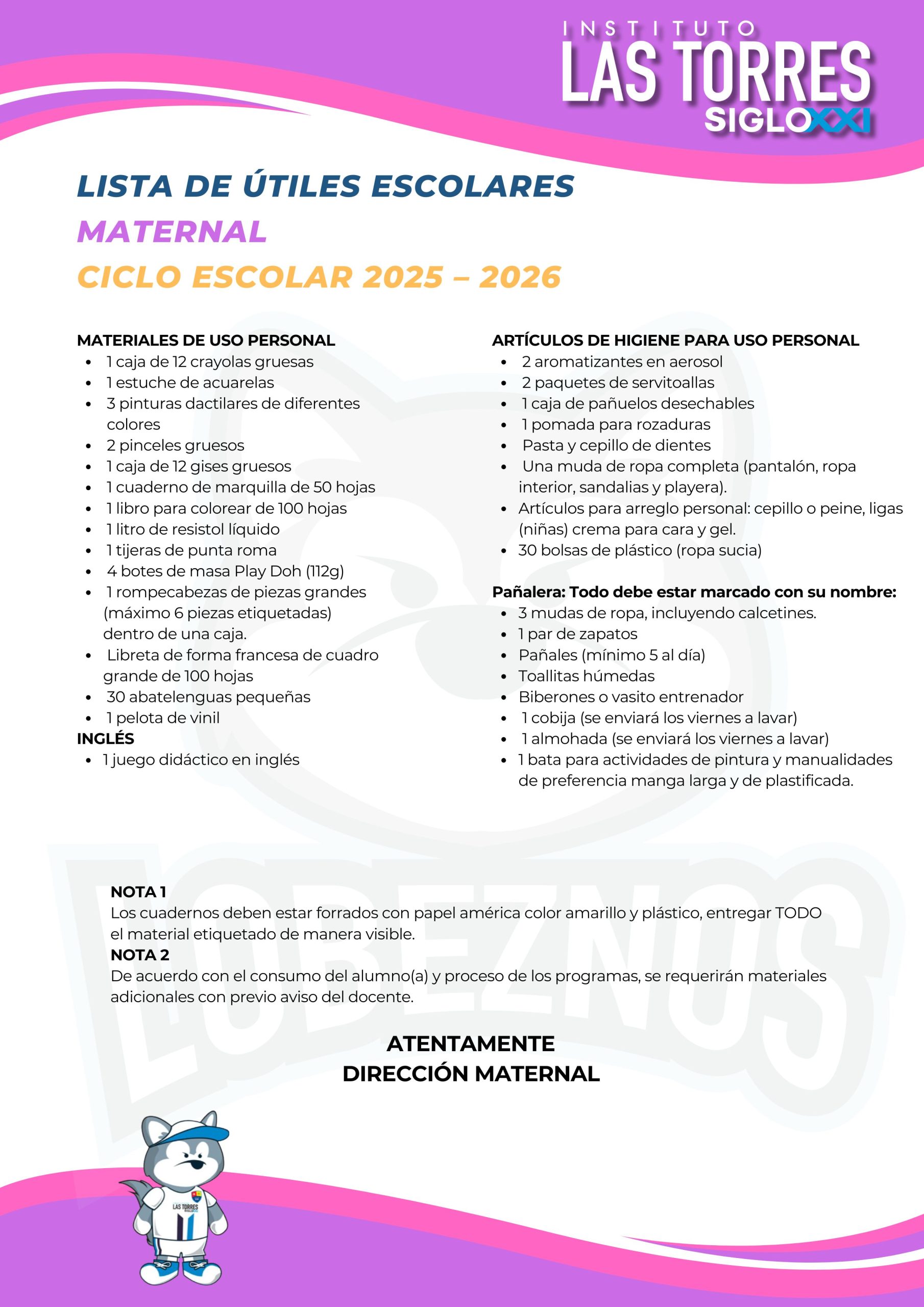 Estimado Padres de familias compartimos con ustedes las listas de útiles correspondientes al ciclo escolar 2025-2026.